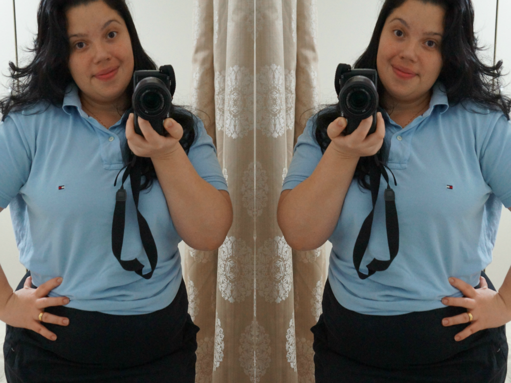 28. Camiseta - Genteeeee que horror!!! Fico com 20 quilos a mais do que tenho com camiseta. Não gosto!!! Mas, entrei na brincadeira para finalizar o desafio com todos os looks propostos!