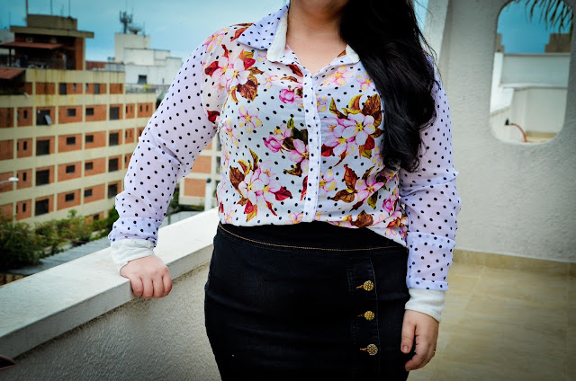 Para a composição do look usei uma camisa com mix de estampas floral e poá, nos pés um scarpin e voilá temos um look casual chique, daqueles que vai bem em muitos ambientes. Se você tiver em dúvida do que usar, faça sempre um casual chique que certamente você acertará em cheio.