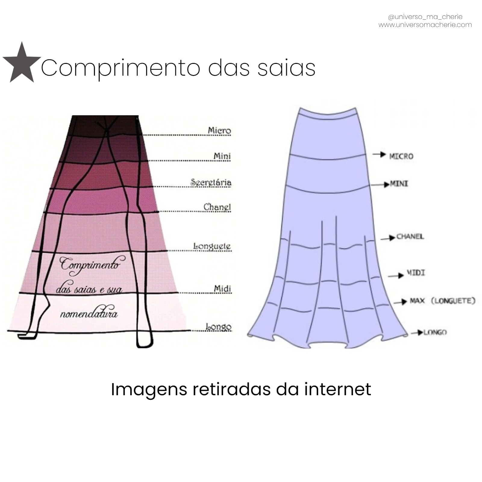 Resolvi trazer essa pauta para o blog e YouTube, dividirei em dois tópicos, hoje falaremos sobre os comprimentos das saias que existem no mercado atualmente, em breve falarei sobre nomenclaturas e modelos.