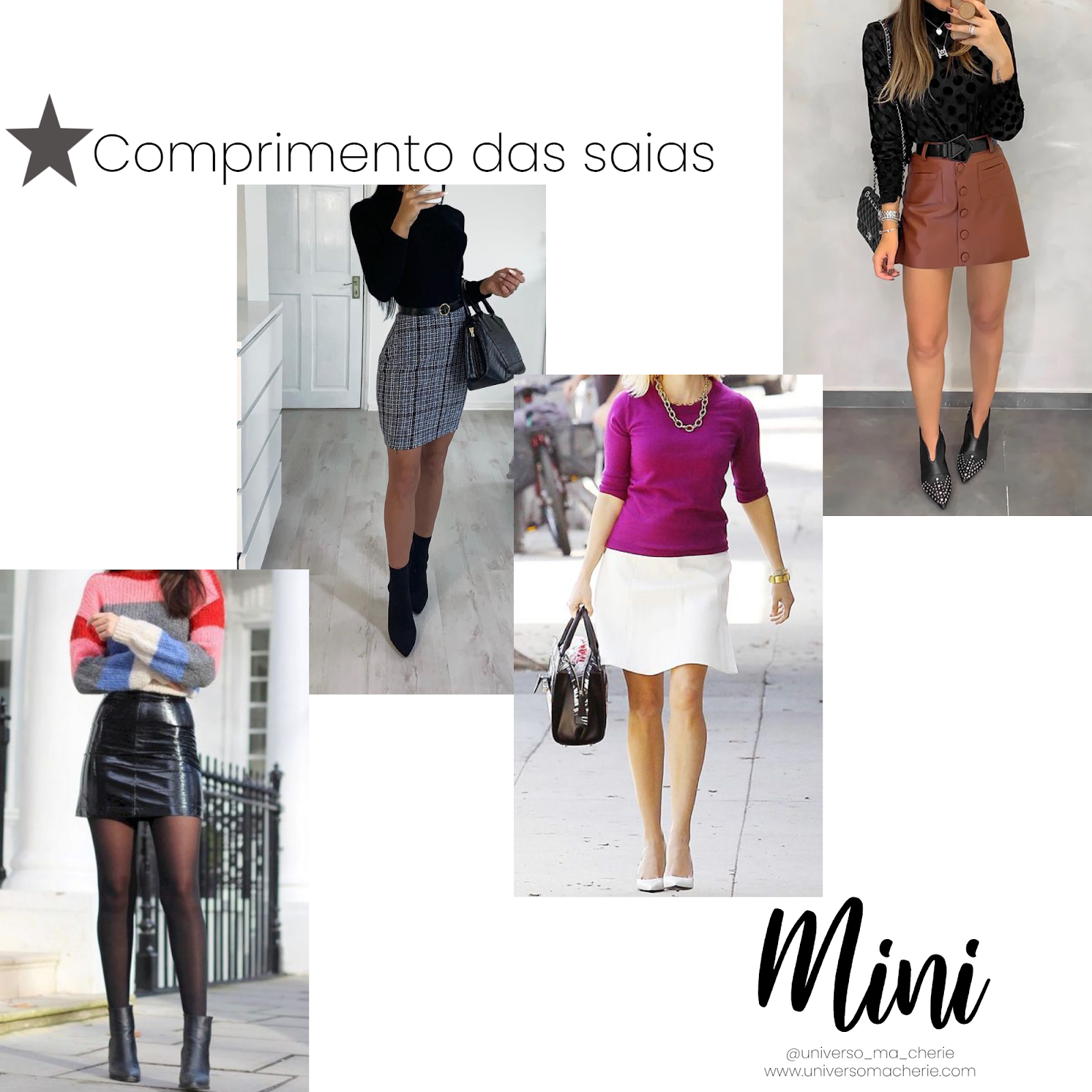 O comprimento mini também é recomendado para momentos informais, notamos em alguns exemplos acima, mulheres com saias mini, porém de forma comportada, ou seja, em alguns momentos, se o código de vestimenta do trabalho permitir, pode-se até usar esse comprimento no ambiente de trabalho, mas lembrando sempre do bom censo, para que não seja ultrapassado alguns limites e você não passar a imagem de mulher vulgar.