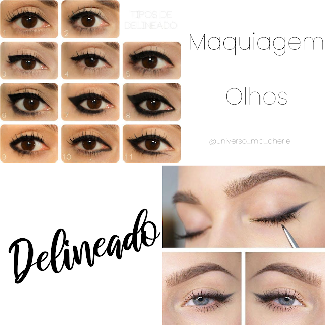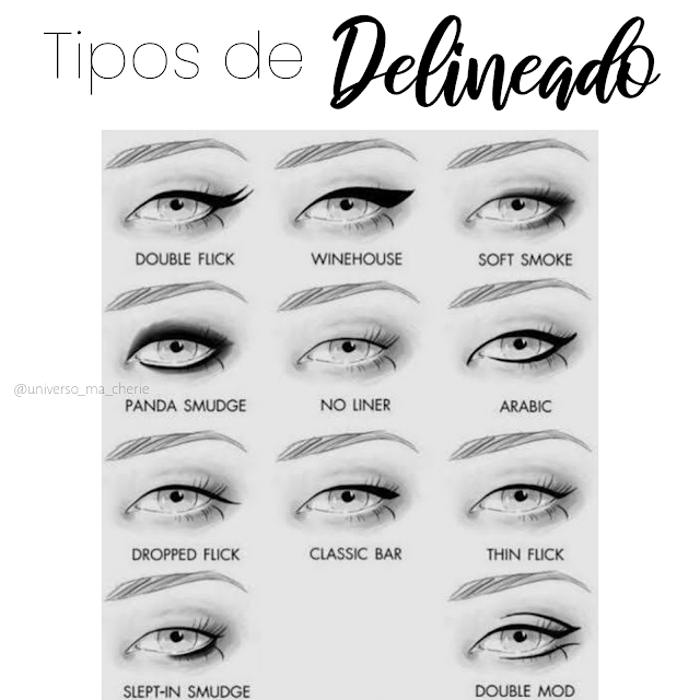 Dentre os delineados que existem, separei alguns modelos com suas devidas nomenclaturas, para que fique fácil na hora de realizar o traço desejado.