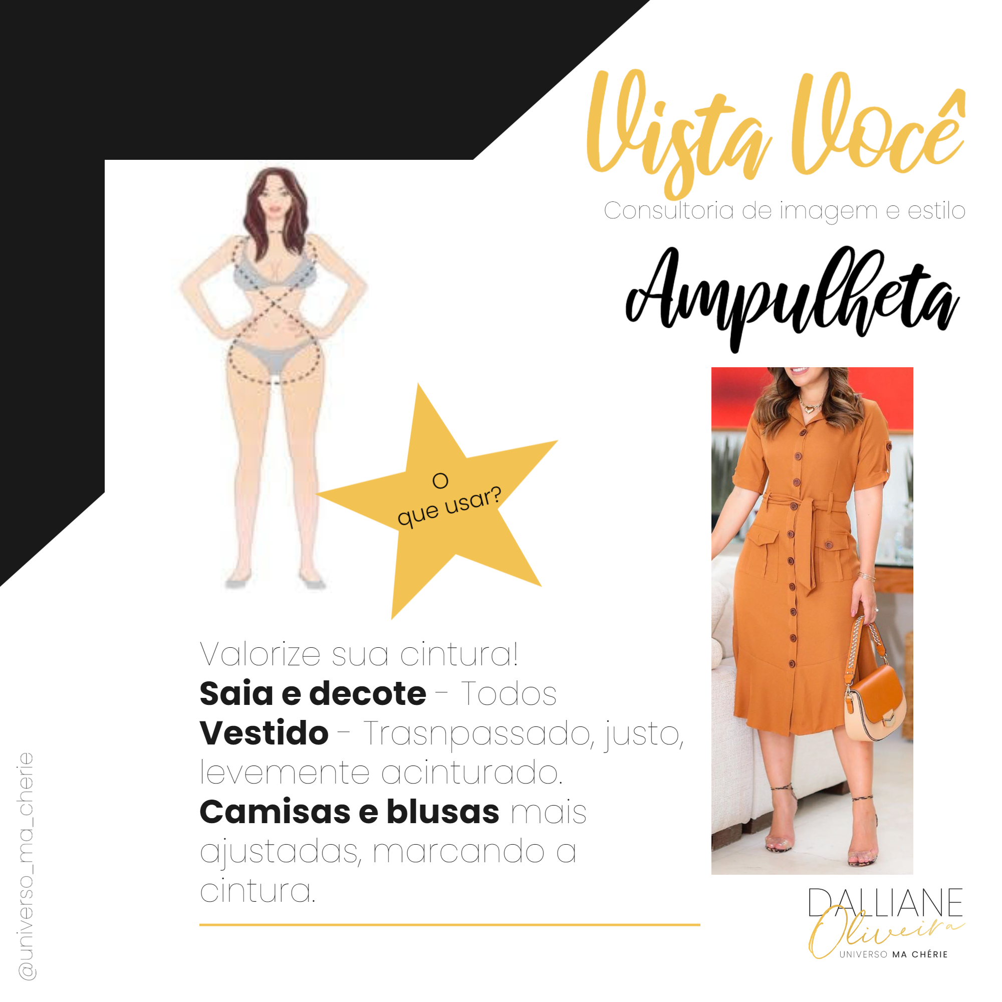 Para os biotipos: ampulheta e silhueta em oito, a dica é marcar a cintura, quase tudo é liberado para esse tipo físico.