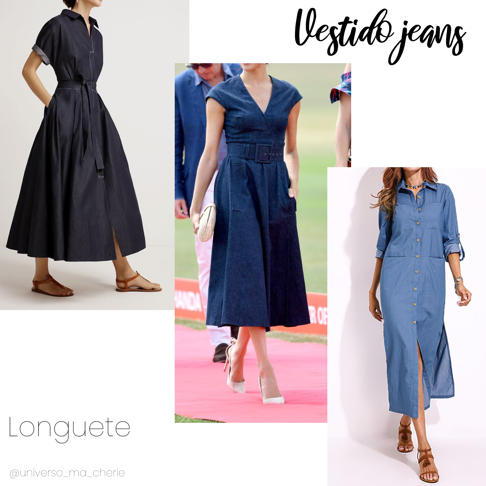 O vestido jeans, além de confortável é também muito versátil, o que facilita muito a estar sempre com estilo, para o post de hoje, minhas escolhas foram baseadas em vestidos longos, com tecidos fluidos e leves, na lavagem jeans.